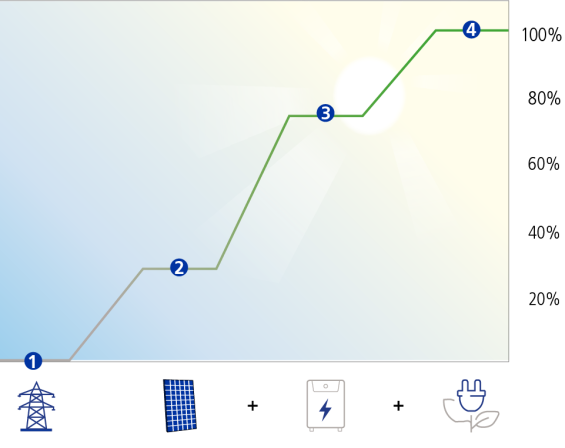 Mit einer Photovoltaikanlage produzieren Sie nachhaltigen Strom. Eine zusätzliche Speicheranlage ermöglicht, diesen auch nach der Erzeugung zu verbrauchen. Mit zusätzlichem Ökostromtarif beziehen Sie ausschließlich grünen Strom.