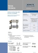 Los colectores para suelo radiante SCHÜTZ están diseñados para integrarse óptimamente en los armarios y con los demás elementos de cada sistema. Gracias a sus compactas dimensiones y el desplazamiento vertical entre impulsión y retorno ocupan un espacio muy reducido. La facilidad de instalación y montaje es otra ventaja del colector tipo 90-3.